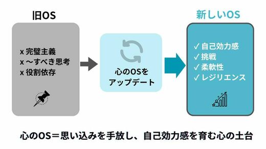 「環境や役割が変わっても、心のOSが古いと、“自分には無理だ”と挑戦にブレーキがかかる。状況に合わせて心のOSをアップデートし、思い込みを手放すことが大事なんです」