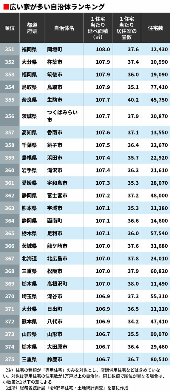 日本のどこなら広い家に住めるのか? 「広い住宅が多い」自治体ランキングTOP500