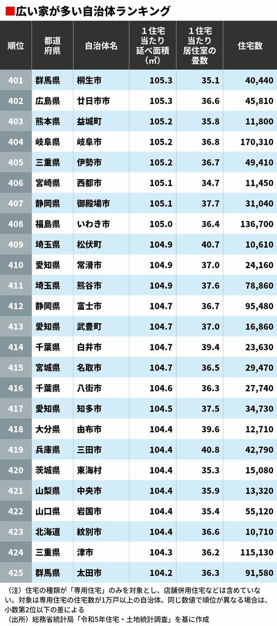 日本のどこなら広い家に住めるのか? 「広い住宅が多い」自治体ランキングTOP500