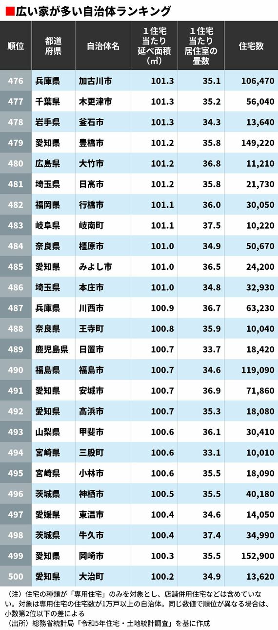 日本のどこなら広い家に住めるのか? 「広い住宅が多い」自治体ランキングTOP500