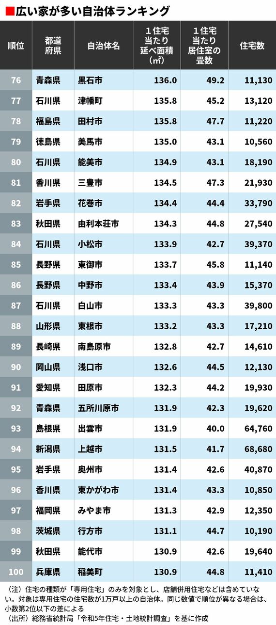 日本のどこなら広い家に住めるのか? 「広い住宅が多い」自治体ランキングTOP500