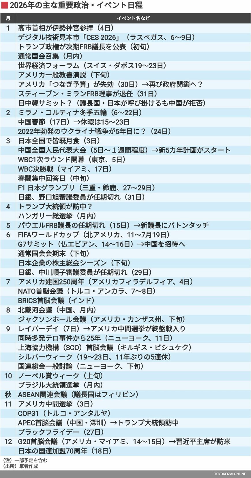 全体を見渡して、最初に目がゆくのが「アメリカの建国250周年」である。こういうタイミングに居合わせるあたり、トランプ大統領はやっぱり「もってる」人である。独立記念日の7月4日に、どんなイベントを仕掛けてくるのだろう。