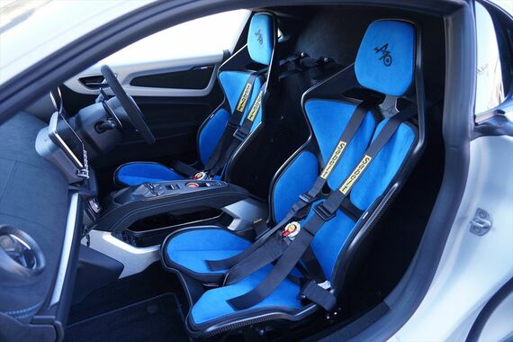 インテリアも、カーボン製バケットシートや5点式シートベルトなどで、レーシーな雰囲気を醸し出す。でも、シートのクッションがブルーで、インパネやドアトリムのステッチを同色で合わせるあたりに、フランス車らしいセンスを感じる。