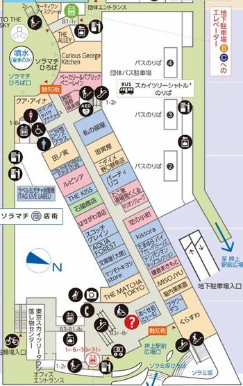 「ソラマチ商店街」を歩いていると、お土産店や酒店があったと思えば、革製品の専門店やアンパンマンの子供服店がある。「マリオンクレープ」や「たこ家道頓堀くくる」などの食物販もあれば、「THE KISS」や「サマンサタバサプチチョイス」といった雑貨もある。このテナントの雑多さが、商店街らしさを感じさせる。