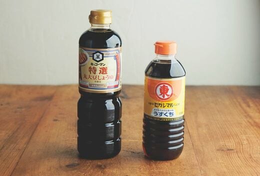 レシピで「しょうゆ」と書いてあれば、濃口を使用。薄口は色は淡いが塩分は高め。野菜の色を生かしたいときなどに重宝する。