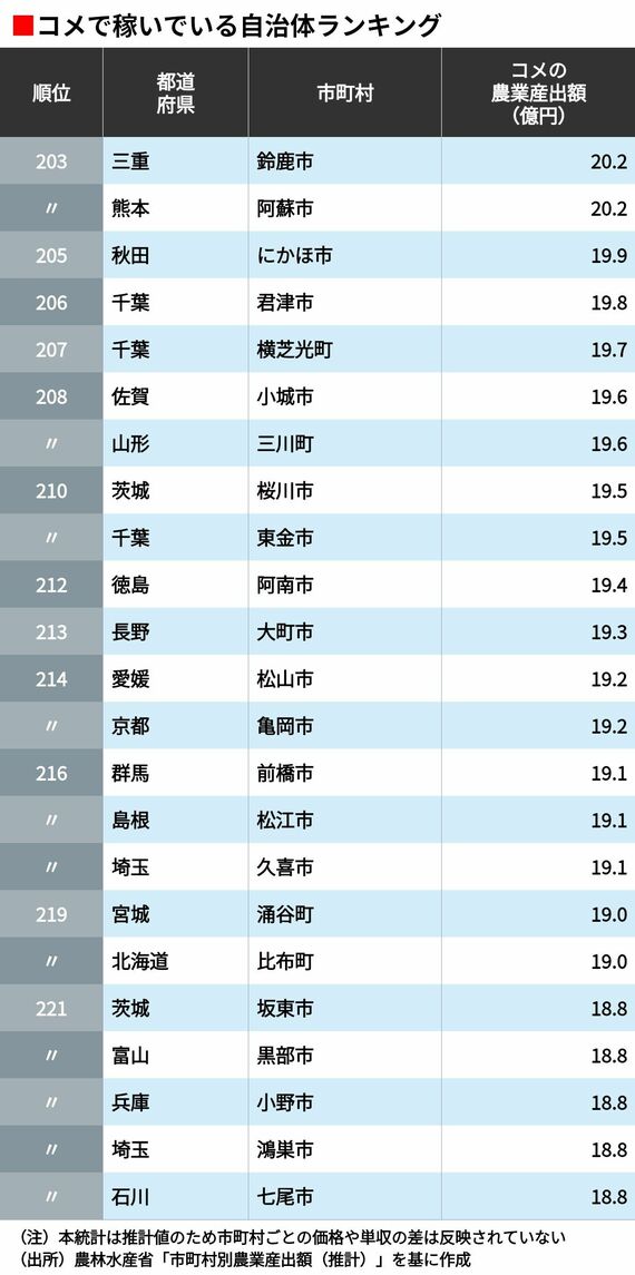 「コメで稼いでいる」自治体ランキング 5位は山形県鶴岡市、4位は秋田県横手市、ではトップ3は?
