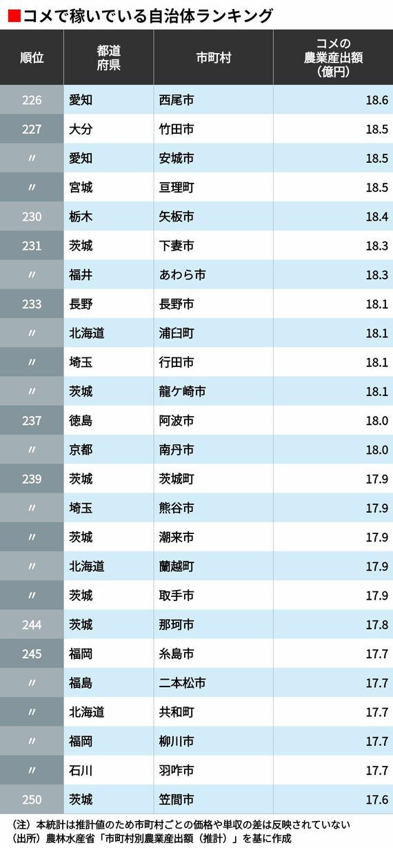 「コメで稼いでいる」自治体ランキング 5位は山形県鶴岡市、4位は秋田県横手市、ではトップ3は?