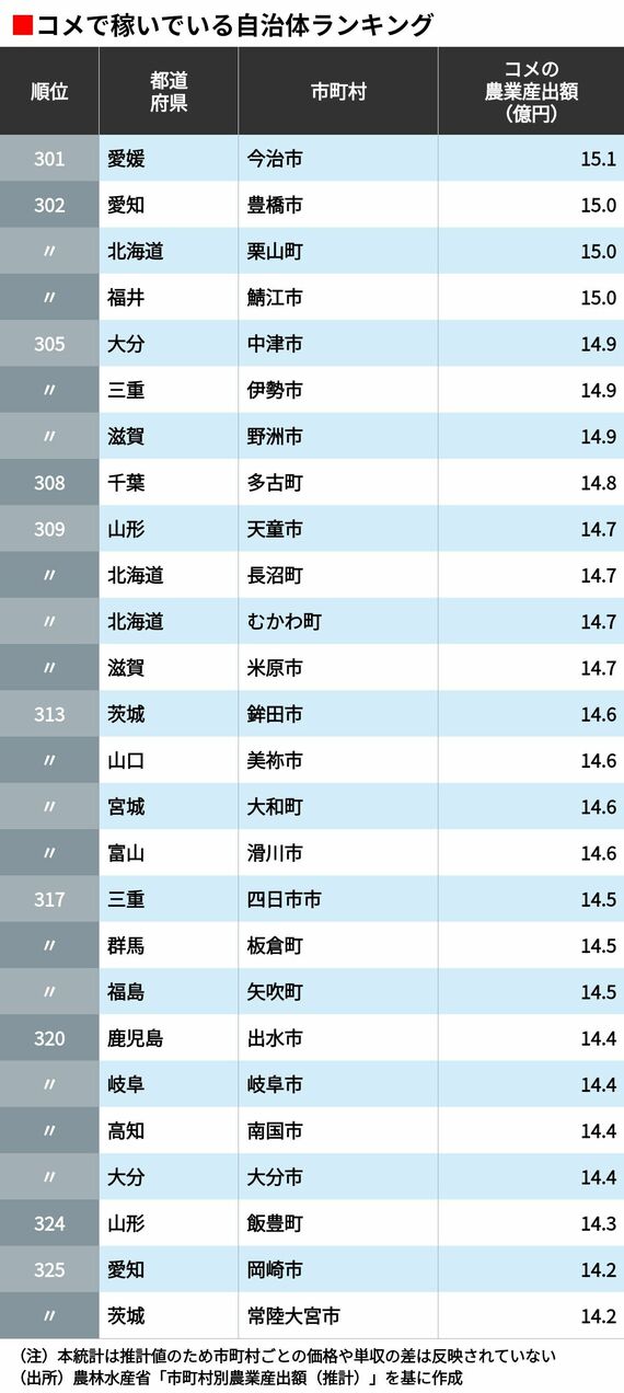 「コメで稼いでいる」自治体ランキング 5位は山形県鶴岡市、4位は秋田県横手市、ではトップ3は?