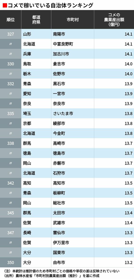 「コメで稼いでいる」自治体ランキング 5位は山形県鶴岡市、4位は秋田県横手市、ではトップ3は?