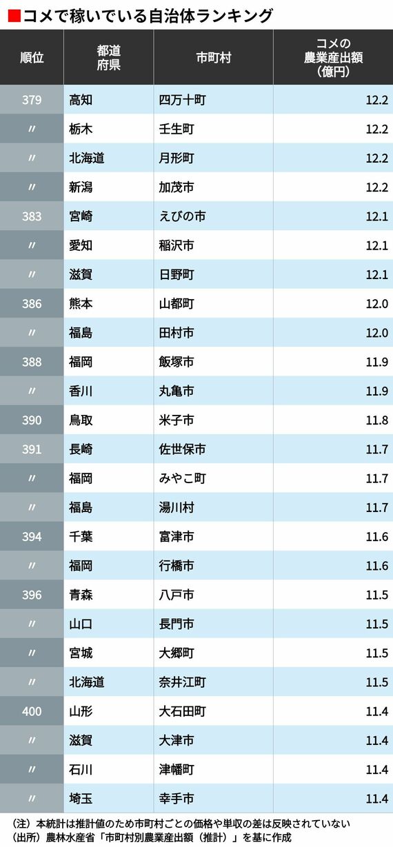 「コメで稼いでいる」自治体ランキング 5位は山形県鶴岡市、4位は秋田県横手市、ではトップ3は?