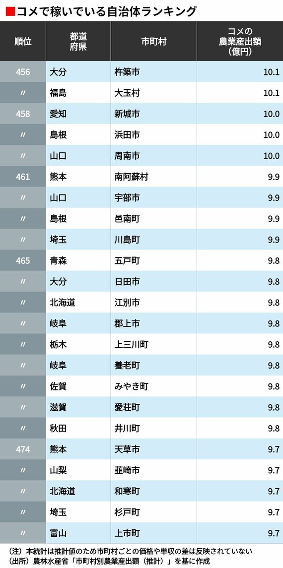 「コメで稼いでいる」自治体ランキング 5位は山形県鶴岡市、4位は秋田県横手市、ではトップ3は?