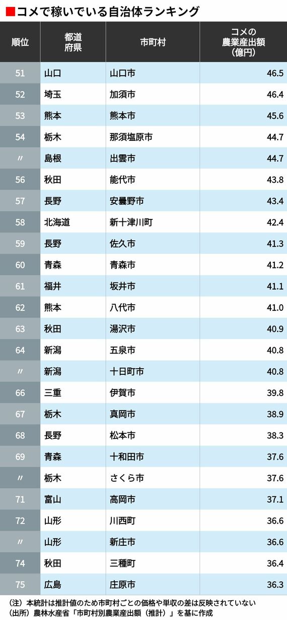 「コメで稼いでいる」自治体ランキング 5位は山形県鶴岡市、4位は秋田県横手市、ではトップ3は?