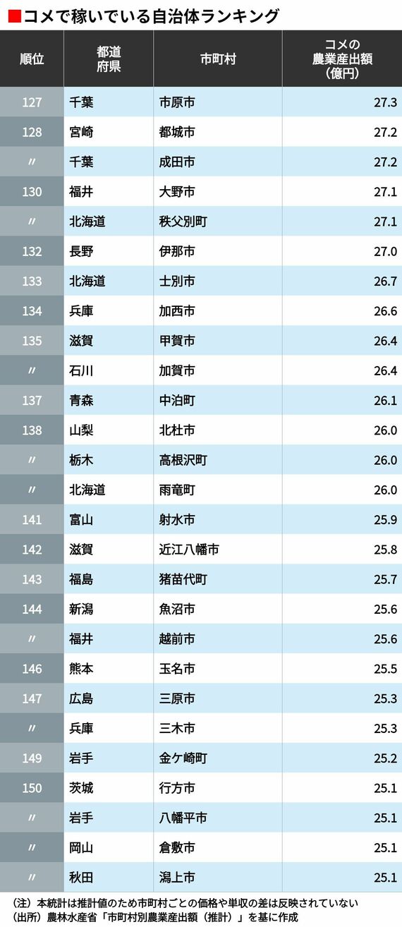 「コメで稼いでいる」自治体ランキング 5位は山形県鶴岡市、4位は秋田県横手市、ではトップ3は?