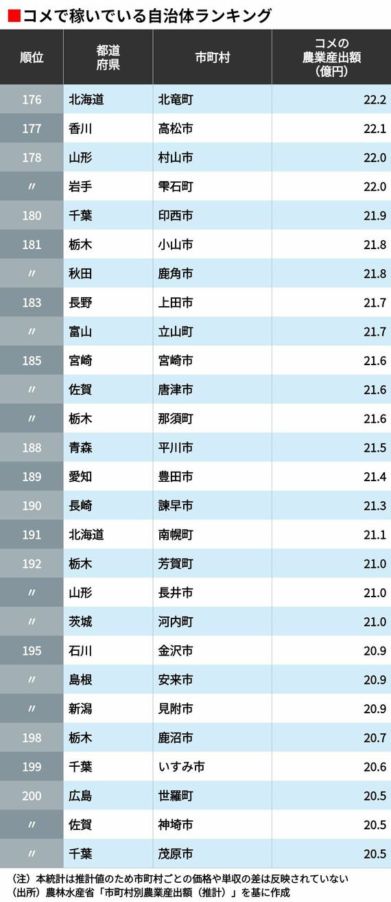 「コメで稼いでいる」自治体ランキング 5位は山形県鶴岡市、4位は秋田県横手市、ではトップ3は?