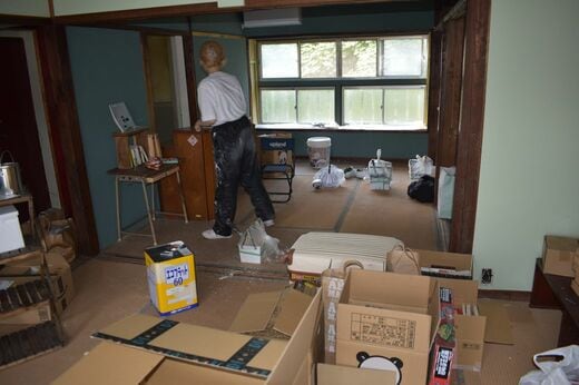 ブックカフェのオープンに向けて改修作業に来ていた女性入居者に話を聞くことができた。すでに部屋を借りていた友人から紹介を受け、興味を持ったのがきっかけ。一人暮らしから実家に戻る際に、大量に所持していた本を実家に戻すより、この団地の1室に持ち込み、「身内が読書を楽しめる本の閲覧室」のような場にすることを思い立ったのだそうだ。