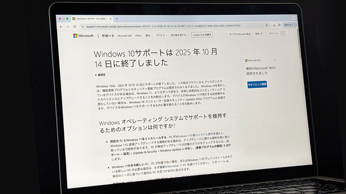 Windows10が、2025年10月14日をもってサポート終了(EOS:End of Support)となった。
