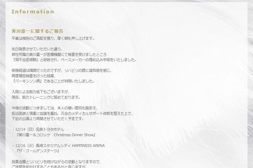 お知らせ(美川憲一さんのオフィシャルウェブサイトより)