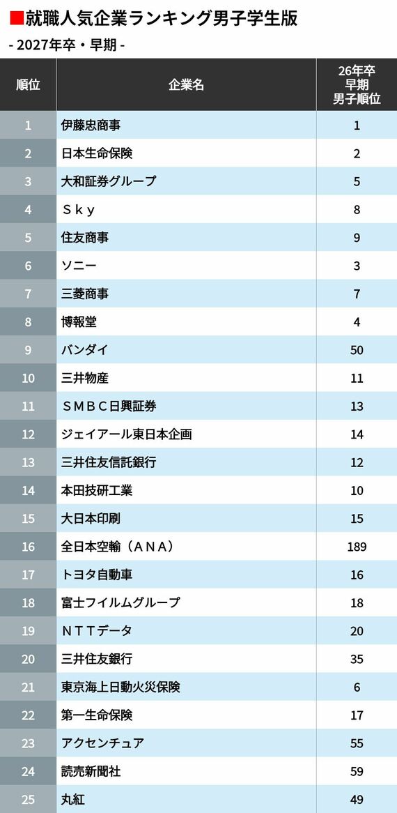 男子・女子学生が選んだ「就職人気ランキング」 属性別で変わる人気企業の実態