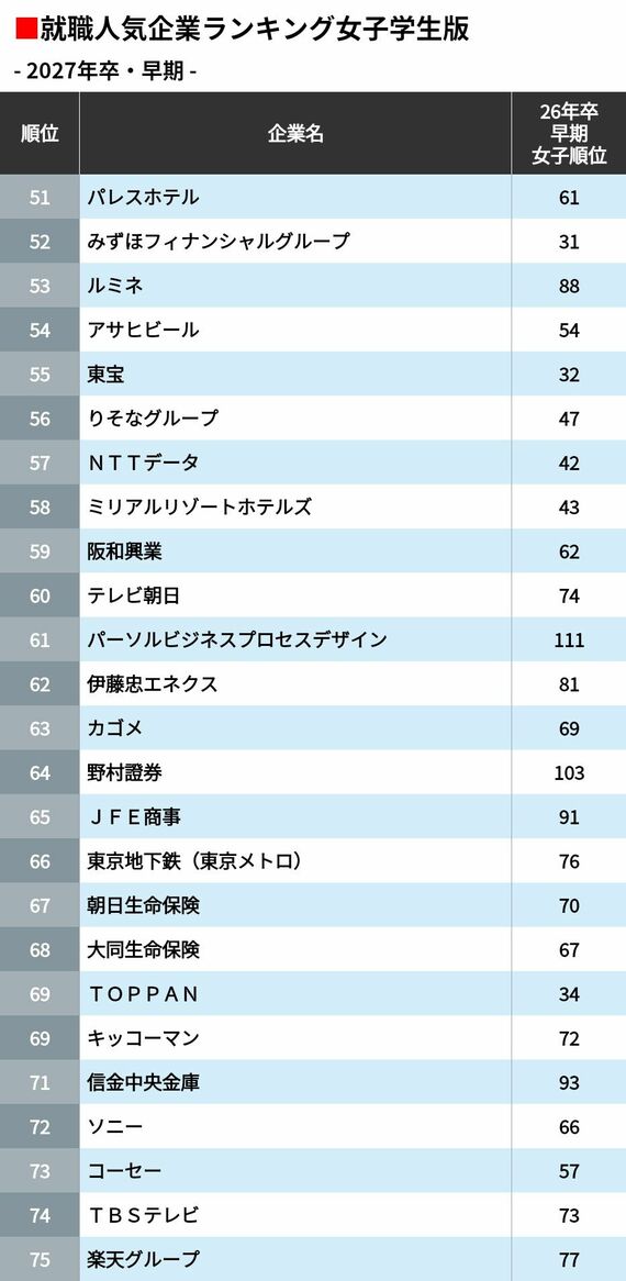 男子・女子学生が選んだ「就職人気ランキング」 属性別で変わる人気企業の実態
