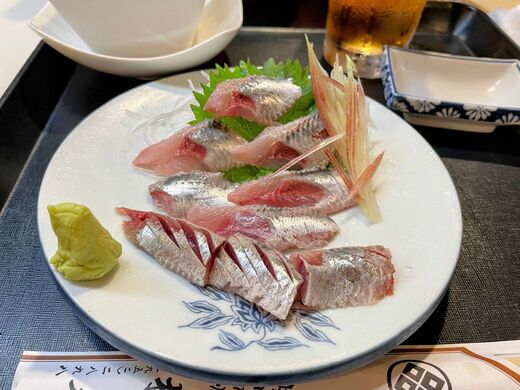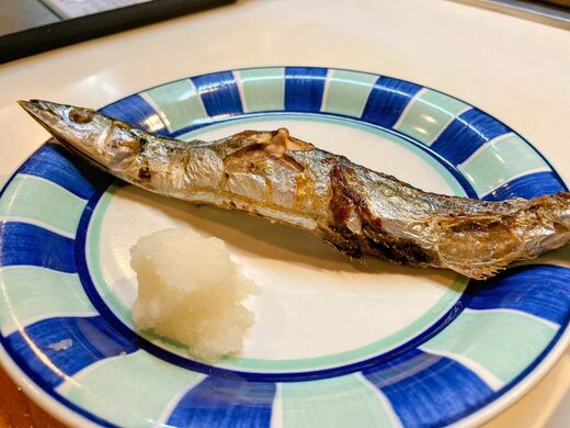 足の早い青魚の刺し身はこういうところでしか口にしない。スーパーでパックの刺し身を選ぶときは、どうしてもサーモンやマグロ、ハマチやなんかに目が行く。青魚はさばいた直後に食べてこそ美味いのだ。絶妙な塩加減の焼きサンマは、ほろ苦いワタまで美味しくいただいた。