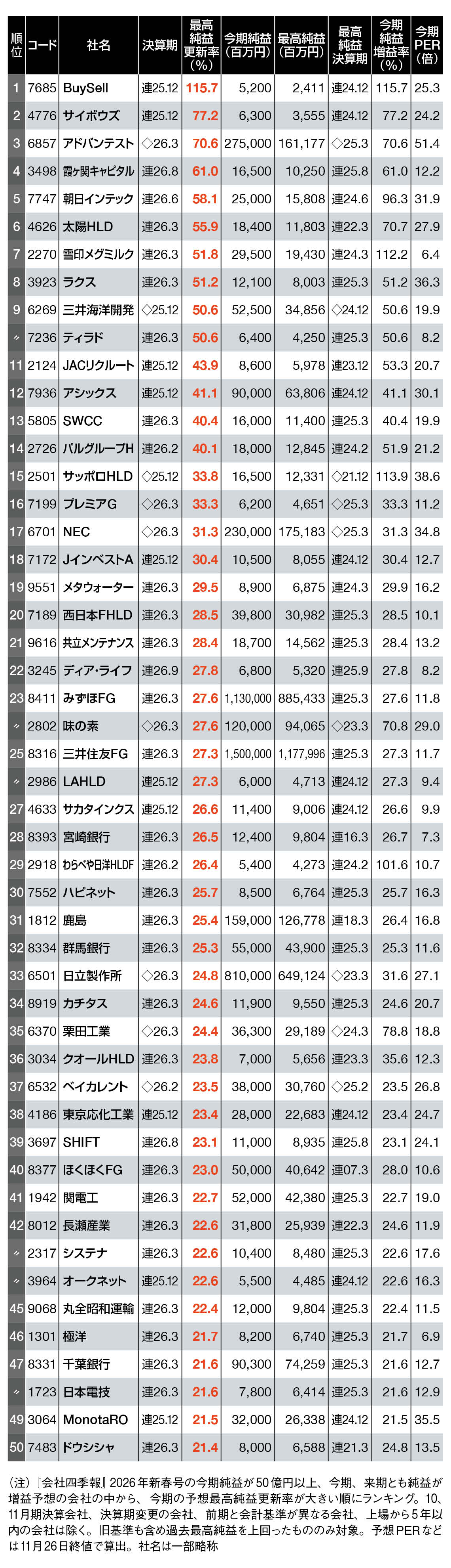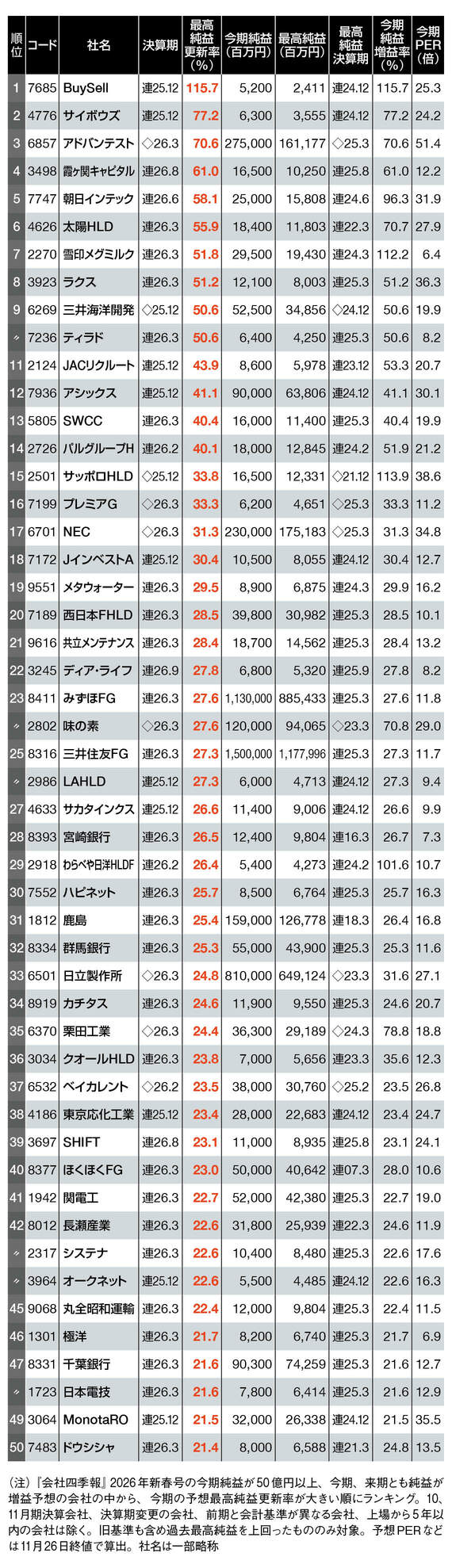 「四季報」最新!最高益更新ランキング
