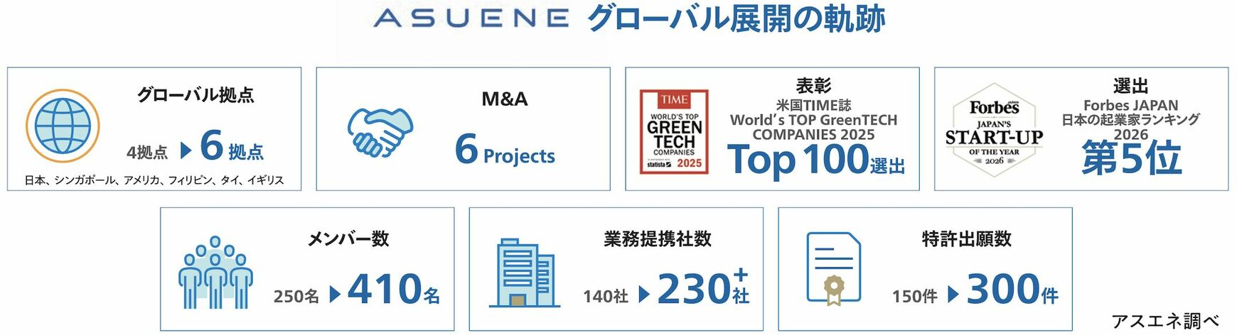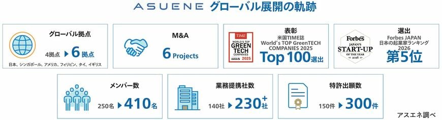 設立は2019年。現在までに累計115億円の資金調達を達成、シンガポール、アメリカなど6カ国に海外拠点を構え、日米6社のクライメートテック企業を買収している。