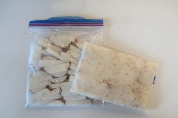 一度に食べきれない場合は、調理する大きさに切ってから冷凍するのがおすすめです。厚めの輪切り、千切り、乱切りなど、作るものを意識して切って冷凍保存するのがいいです。