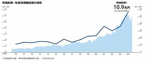 きっちり連動していることがわかります。企業価値・時価総額を拡大させることにコミットし、それができれば報酬が増え、できなければ減る、そんなシンプルな仕組みというわけです。