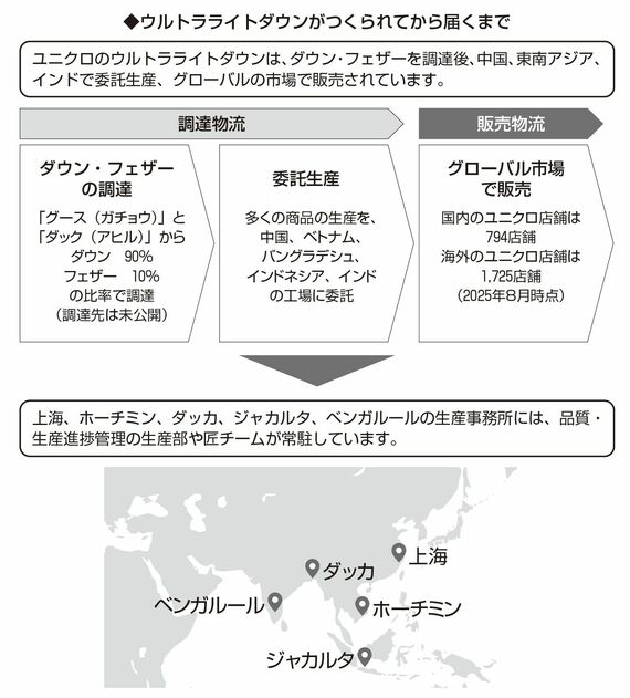 丸わかり! ユニクロ「ウルトラライトダウン」が消費者の手元に届くまでの"複雑なサプライチェーン"