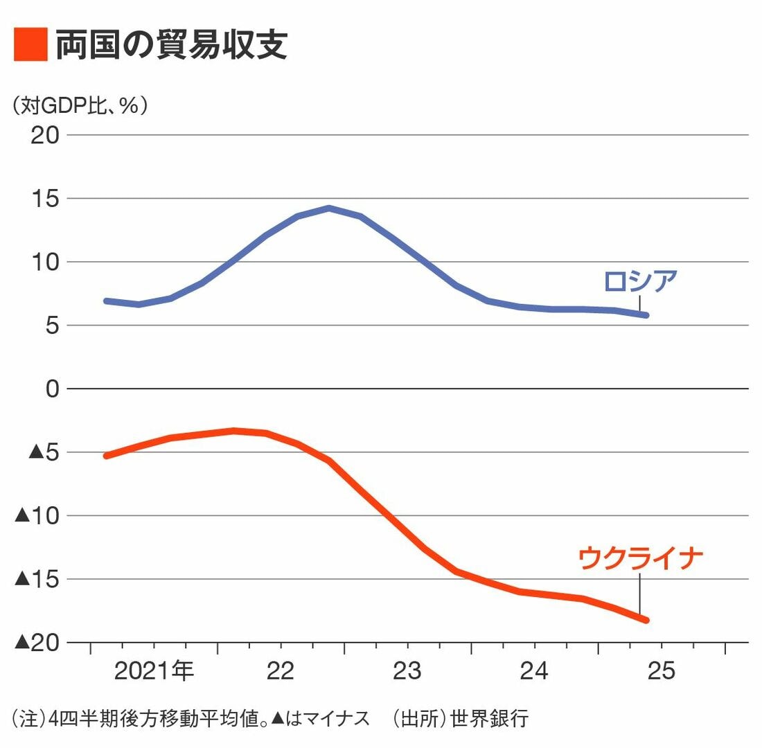 対して、ウクライナの貿易赤字は、軍需品の輸入が増加したことなどから、赤字の拡大が続いている。