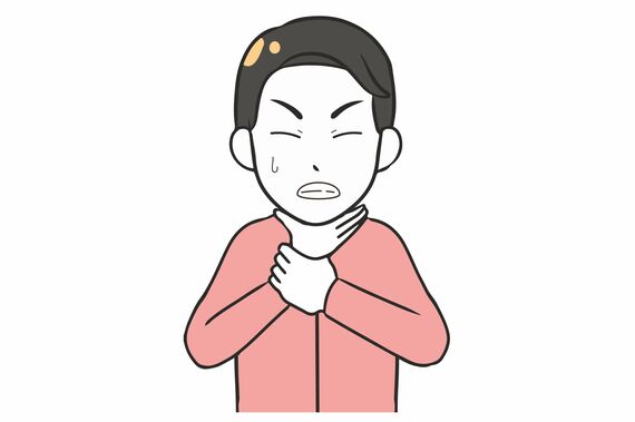 窒息の最もわかりやすいサインは、首元に手を当てるような、喉をつかむような動作。これは“チョークサイン”と呼ばれ、世界共通の窒息のサインといわれている(下のイラスト参照)。