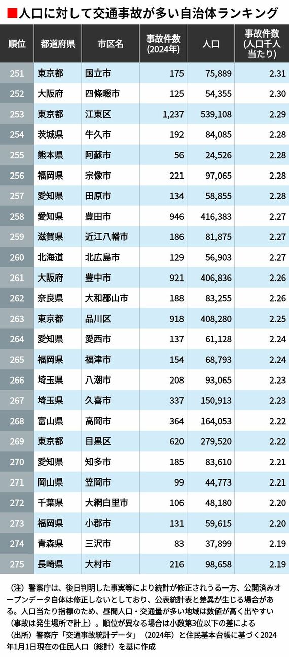 交通事故が人口に対して多い自治体ランキング 上位に入ったのはどこ?