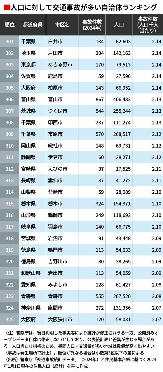 交通事故が人口に対して多い自治体ランキング 上位に入ったのはどこ?