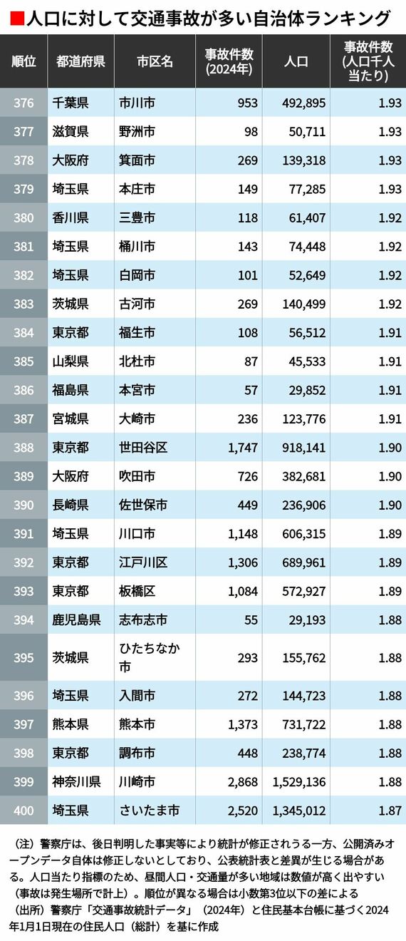 交通事故が人口に対して多い自治体ランキング 上位に入ったのはどこ?