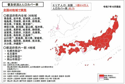 住民が急な病気やケガをしたときに、「救急車を呼んだほうがいいのか」、「今すぐ病院に行ったほうがいいのか」などで迷った際の相談窓口として、専門家から電話でアドバイスを受けることができる仕組みです。2025年10月の人口カバー率85.7%と、多くの地域で実施されています。