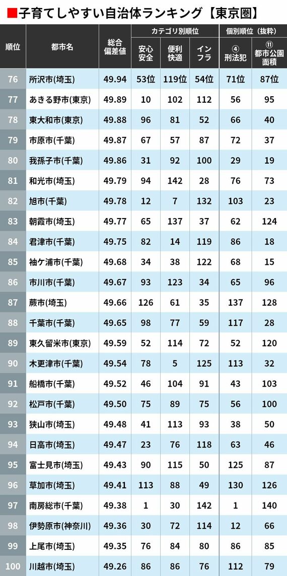 ※ランキングの対象自治体は、東京圏(東京・埼玉・千葉・神奈川)の142市区(都心3区〈千代田区・中央区・港区〉は除く)。 大阪圏(大阪・京都・兵庫・奈良)は89市、名古屋圏(愛知・岐阜・三重)は73市。