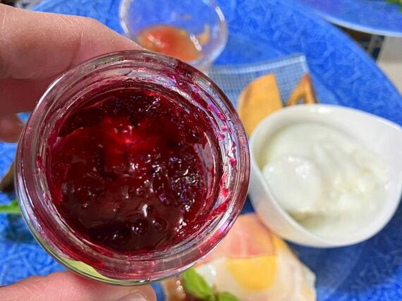 翌朝は、カツ子さんの手作りかぼちゃスープとパンなどの朝食に舌鼓を打ちました。赤くベリーっぽい、でも、食べたことのない味のジャムがあったので、カツ子さんに尋ねました。