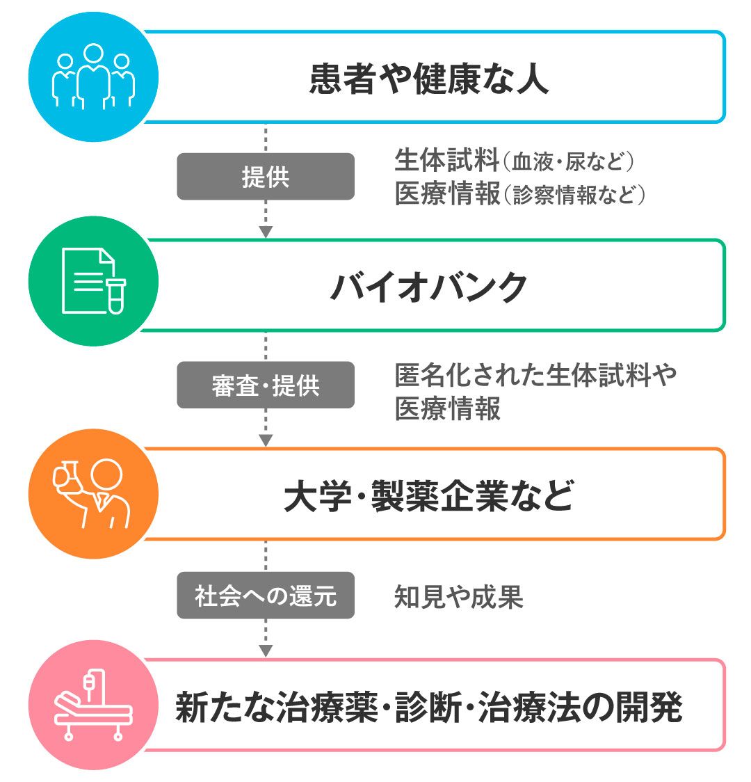 「バイオバンクとは、血液や尿、DNAなどの『生体試料』および、生活習慣や健康状態などの『生体試料にひも付く情報』を、将来の研究利用のために体系的に保存・管理する仕組みのことです。ToMMoでは、独立した委員会による審査をもとに、研究者に対して生体試料を提供したり、試料を自ら大規模に統一的に解析してデータセットを作って閲覧・利用に供したりしています」