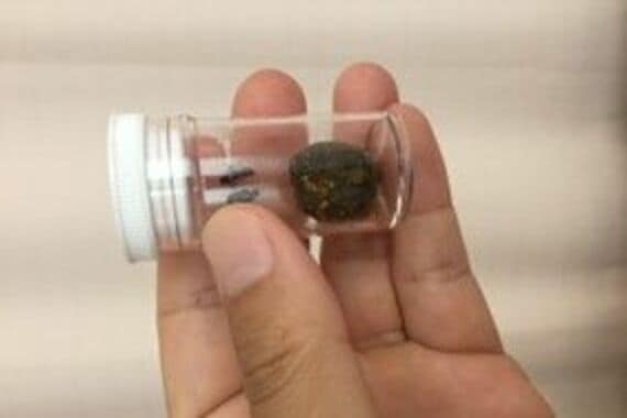 山口直人さん(仮名・59歳)が見せてくれた梅干しの種のような物体は、透明なケースに入っていた。色は焦げ茶で、大きさは直径2センチほど。