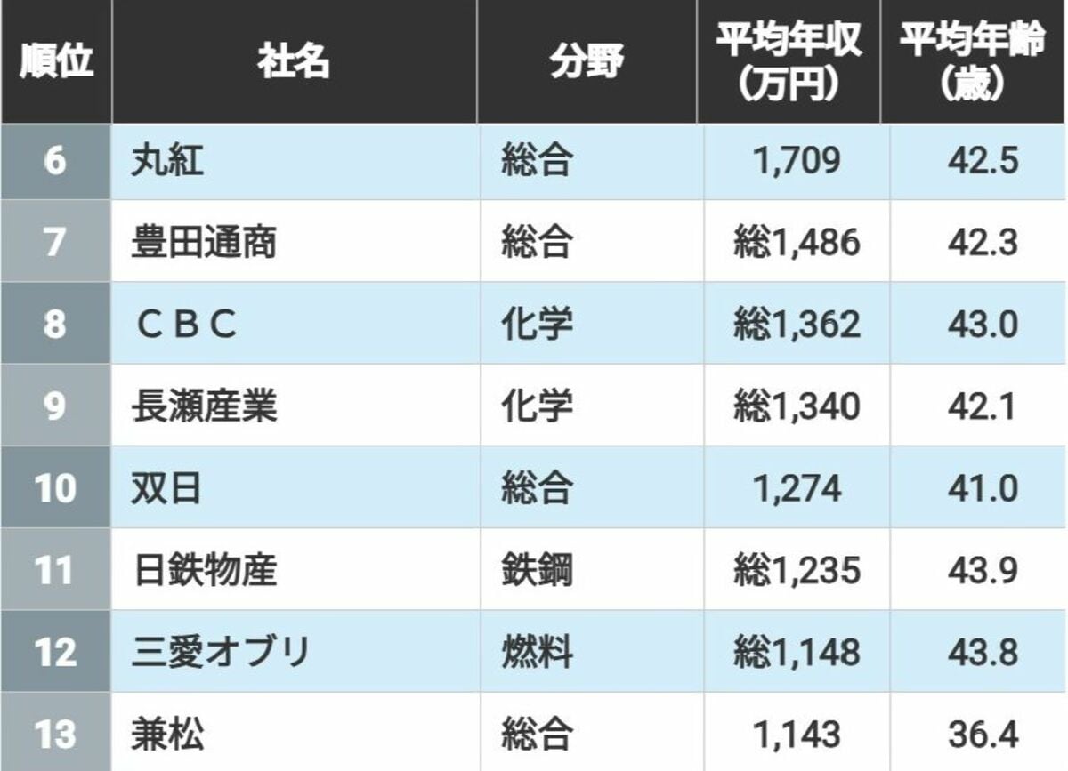 総合商社に迫る高年収となっている専門商社も複数ランクインしている。早速みていこう。
