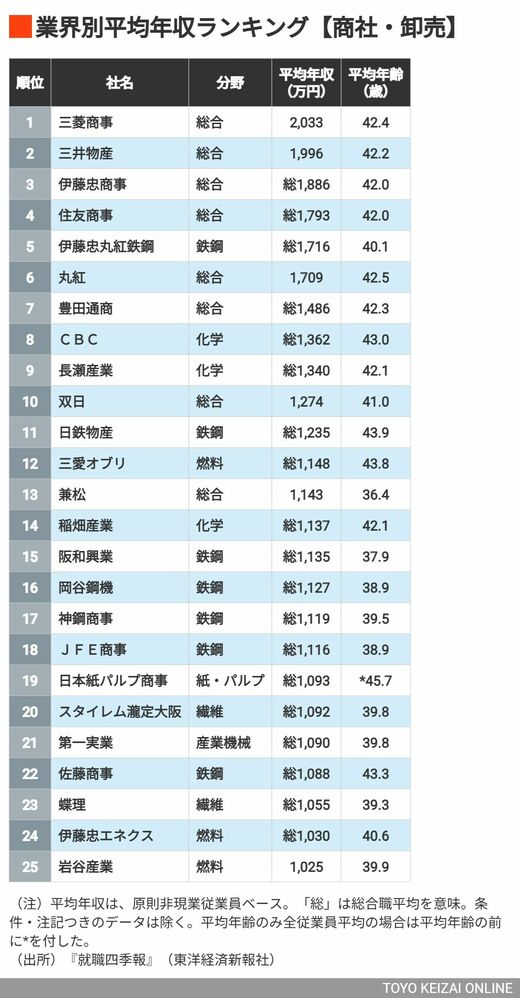 ビジネス #ダイジェスト版 前の記事 次の記事 1位は2033万円!「商社・卸売」の平均年収ランキング 専門商社で総合商社レベルの待遇も『就職四季報』 2分で読める 公開日時:2025/12/26 05:40 丹羽 夏海 東洋経済『就職四季報』編集部 フォロー 1/3 PAGES 2/3 PAGES 3/3 PAGES 1~25位は? 26位以降のランキングは、「1位2033万円「商社・卸売」平均年収TOP50《完全版》」(有料会員登録が必要です)でご覧いただけます。