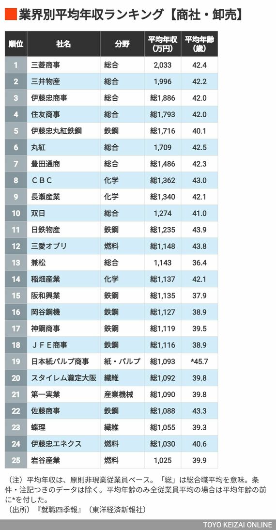 1位は2033万円!「商社・卸売」の平均年収ランキング 専門商社で総合商社レベルの待遇も『就職四季報』