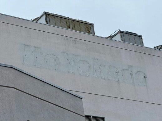 現在の「おでんせプラザぐろーぶ」には、スーパーも100円ショップもなく、「Ito Yokado」の文字跡が悲しく浮かび上がっている。