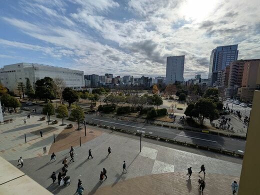 奥に進むと窓際に面して道路を見下ろせる席や、わずかだがテラス席もあるのがうれしいところ。やはり窓際は人気である。テラス席からは錦糸公園を見下ろせ、なかなか開放的でポイントが高い。