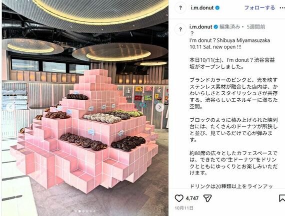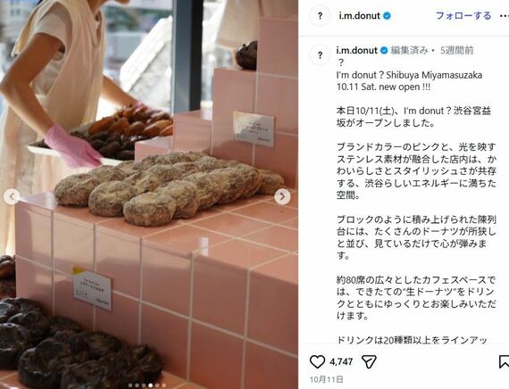 写真を見ると、淡いパステルピンクの正方形のタイルに、ドーナツが並んでいる。タイルの間には、白い目地があるのも特徴的だ。「パステルカラーのタイルと、白い目地のコントラスト」を見て、投稿のようにトイレを思い出す人は多かったようで、Xでは同意する声が相次いだ。