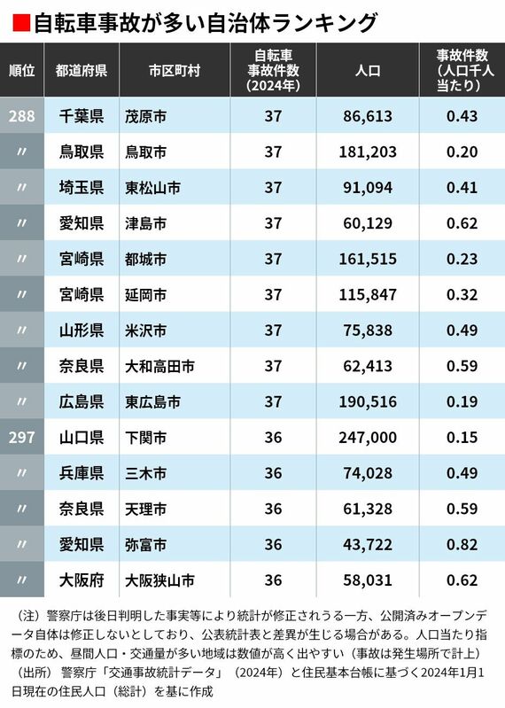 「自転車事故が多い」自治体ランキング300 5位は神奈川県川崎市、4位は福岡市、ではトップ3は?