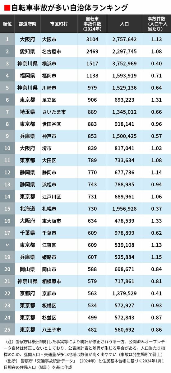 ライフ 「自転車事故が多い」自治体ランキング300 5位は神奈川県川崎市、4位は福岡市、ではトップ3は? 2分で読める 公開日時:2025/12/26 05:30 東洋経済オンライン編集部 フォロー 1/13 PAGES 2/13 PAGES 1〜25位 次ページが続きます:【26〜49位】 3/13 PAGES 4/13 PAGES 5/13 PAGES 6/13 PAGES 7/13 PAGES 8/13 PAGES 9/13 PAGES 10/13 PAGES 11/13 PAGES 12/13 PAGES 13/13 PAGES