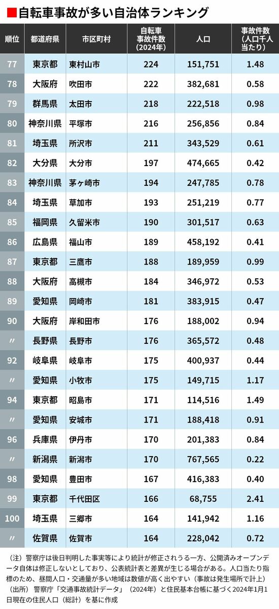 ライフ 「自転車事故が多い」自治体ランキング300 5位は神奈川県川崎市、4位は福岡市、ではトップ3は? 2分で読める 公開日時:2025/12/26 05:30 東洋経済オンライン編集部 フォロー 1/13 PAGES 2/13 PAGES 3/13 PAGES 4/13 PAGES 5/13 PAGES 77〜100位 次ページが続きます:【102〜126位】 6/13 PAGES 7/13 PAGES 8/13 PAGES 9/13 PAGES 10/13 PAGES 11/13 PAGES 12/13 PAGES 13/13 PAGES