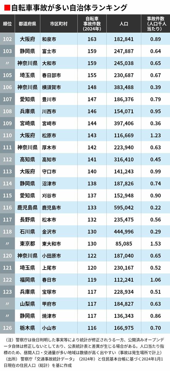 ライフ 「自転車事故が多い」自治体ランキング300 5位は神奈川県川崎市、4位は福岡市、ではトップ3は? 2分で読める 公開日時:2025/12/26 05:30 東洋経済オンライン編集部 フォロー 1/13 PAGES 2/13 PAGES 3/13 PAGES 4/13 PAGES 5/13 PAGES 6/13 PAGES 102〜126位 次ページが続きます:【】 7/13 PAGES 8/13 PAGES 9/13 PAGES 10/13 PAGES 11/13 PAGES 12/13 PAGES 13/13 PAGES