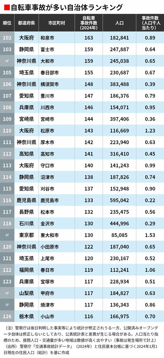 「自転車事故が多い」自治体ランキング300 5位は神奈川県川崎市、4位は福岡市、ではトップ3は?